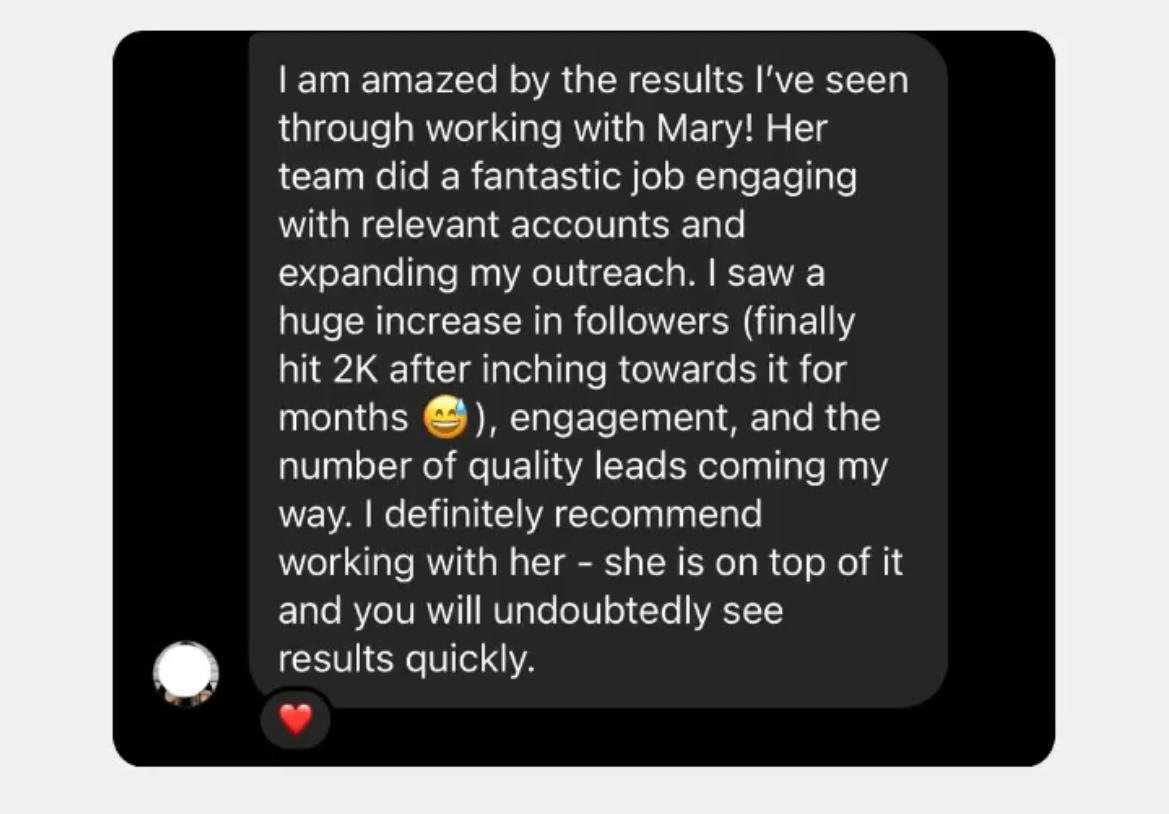 And my agency’s doors opened in 2018 where I get to focus on helping CEOs all over the world with organic Instagram marketing.